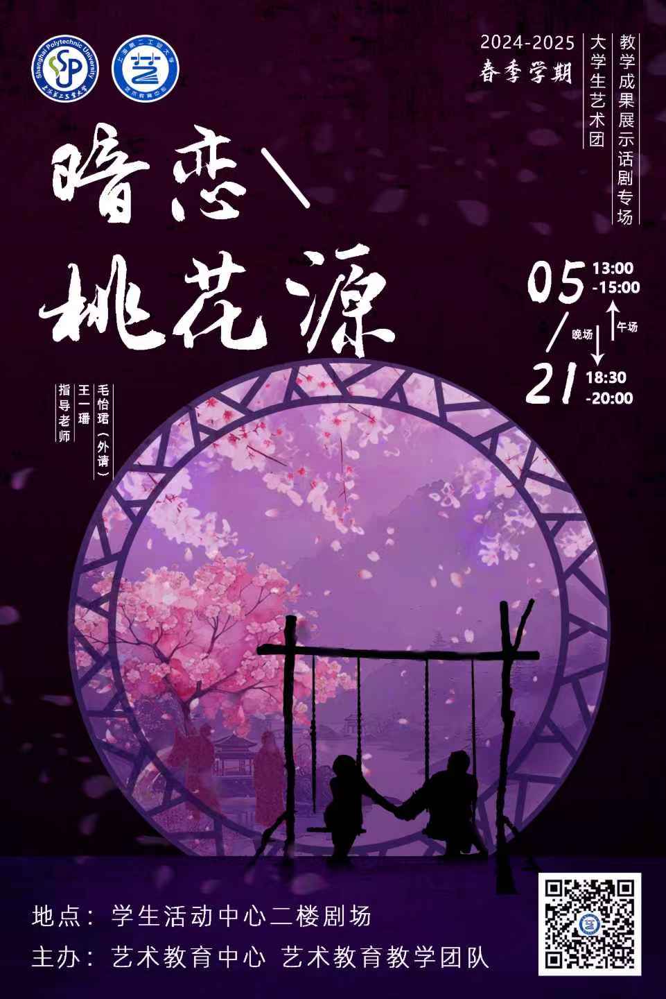 2024-2025春季学期大学生艺术团教学成果展示话剧《暗恋桃花源》索票通知2024-2025春季学期大学生艺术团教学成果展示话剧《暗恋桃花源》即将开演,此次由大学生艺术团话剧倾情呈现的先锋话剧《暗恋桃花源》以当代青年视角解构“戏中戏”的叙事框架,通过蒙太奇式舞台调度展现理想与现实的双重镜像。在《暗恋桃花源》的时空交错中,我们将带您穿梭于民国上海的遗憾爱恋与乌托邦幻境之间。欢迎广大师生积极索票!